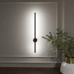 Crafted from a durable blend of Iron and flexible Silicon, the AC45/BK wall light is the epitome of modern minimalist design. Its striking composition features a single, sleek black linear bar intersecting a circular backplate, creating a powerful geometric statement. This piece is the ideal choice for those seeking to introduce vertical elegance and a sense of uncluttered sophistication into any area.