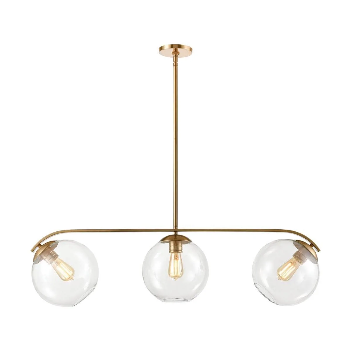 Looking to enhance the sophistication of your home? This elegant 3-light pendant chandelier is the perfect addition to elevate your interior decor. With its sleek brushed gold finish and clear glass globe shades, this fixture is designed to blend seamlessly with modern, contemporary, or mid-century interiors, adding an instant touch of luxury to any space.
