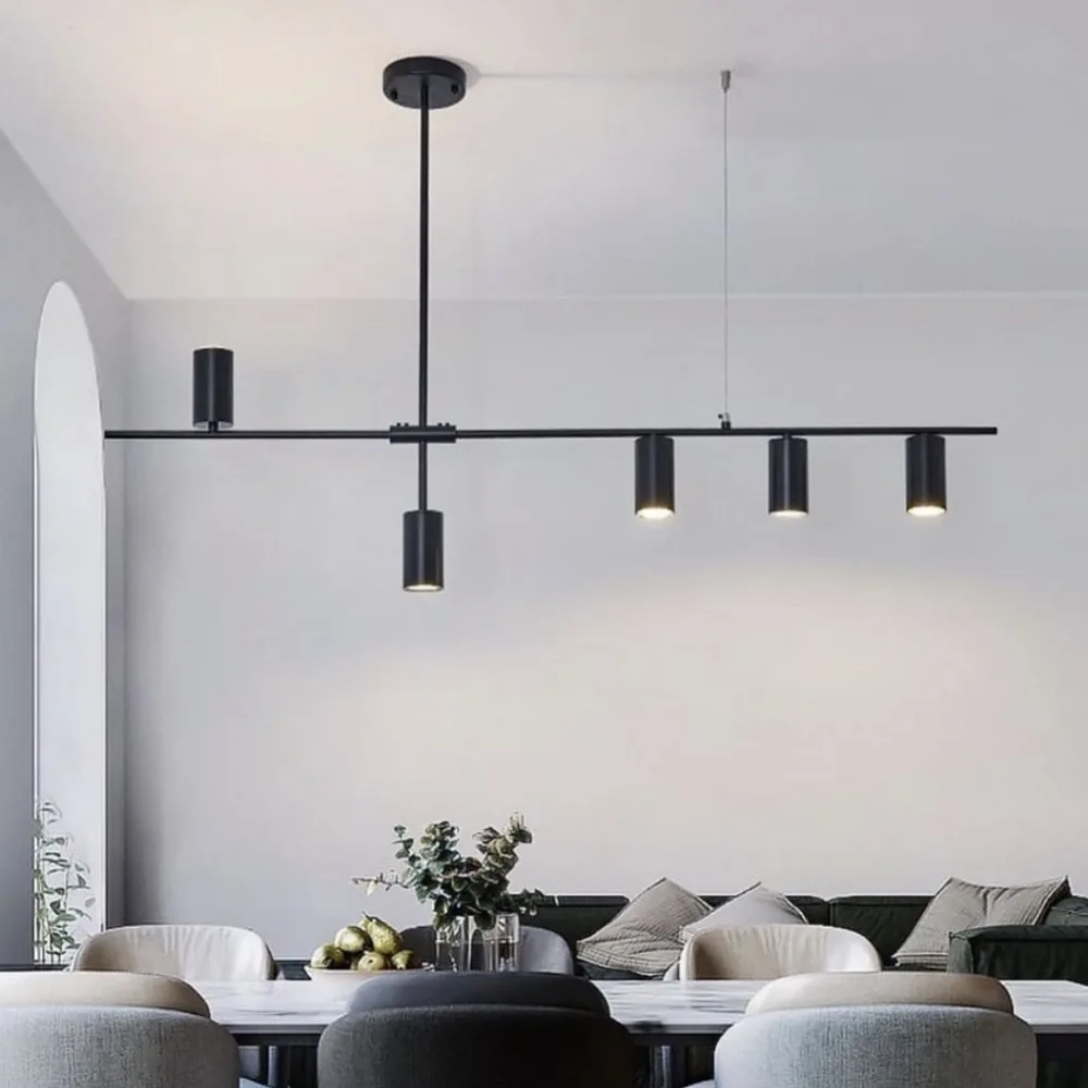 Designed to be both functional and a piece of art, this fixture complements a variety of modern interiors, from minimalist to Scandinavian and industrial styles. Its generous size (L1230W60H740) makes it perfectly suited for placement over a large dining table or kitchen island. The sleek, linear design and adjustable light heads provide focused downlighting, ensuring that every detail below is beautifully highlighted. The combination of high-quality materials and intelligent design makes this chandelier a standout accent that elevates any room.