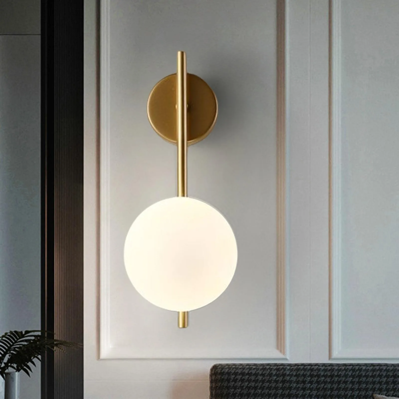 Designed to complement contemporary, minimalist, and mid-century modern interiors, this sconce functions as both a light source and a work of art. The deliberate placement of the vertical gold line against the soft white sphere creates a stunning sense of modern symmetry and structural elegance. The combination of high-quality materials and refined geometry makes the W1055 a standout accent that instantly elevates the perceived value and design quality of any room.